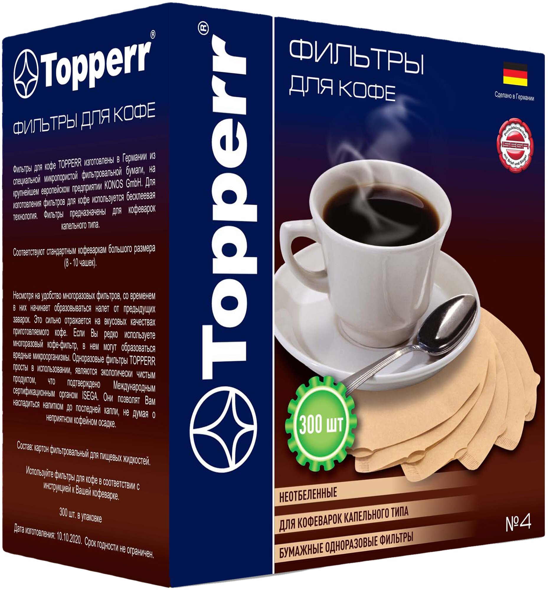 Topperr Бумажные одноразовые фильтры для кофе №4 (300 шт.) неотбеленные, 3047