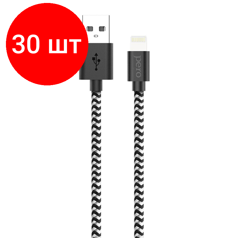10 цен на Комплект 30 штук, Кабель USB PERO DC-04 8-pin Lightning, 2А, 1м, Silver-black