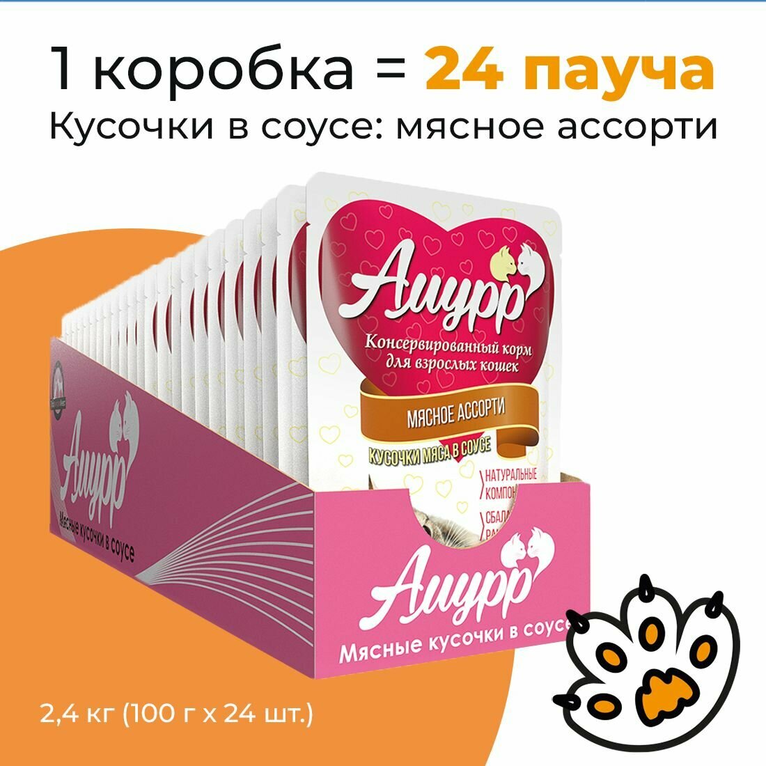 Упаковка 24 пауча для кошек амурр Мясное ассорти в соусе информация:
