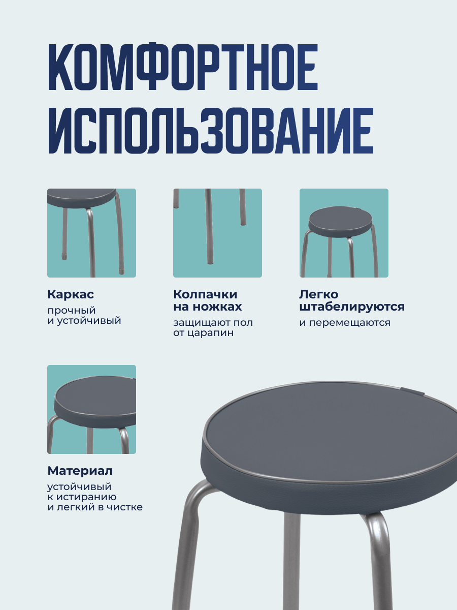 Табурет Ника ТБ1 Серый МЕТ Каркас на 4-Х Опорах (круг Сид)