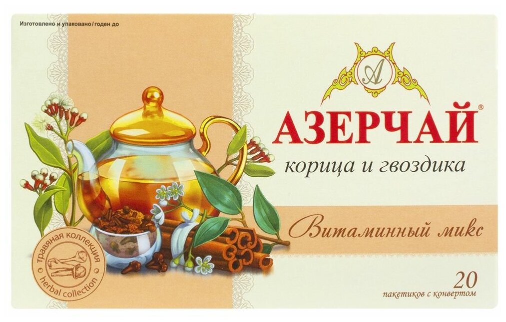 Отзывы на Чай в пакетиках черный Азерчай Витаминный микс, с корицей и гвоздикой, 20 шт, в сашетах