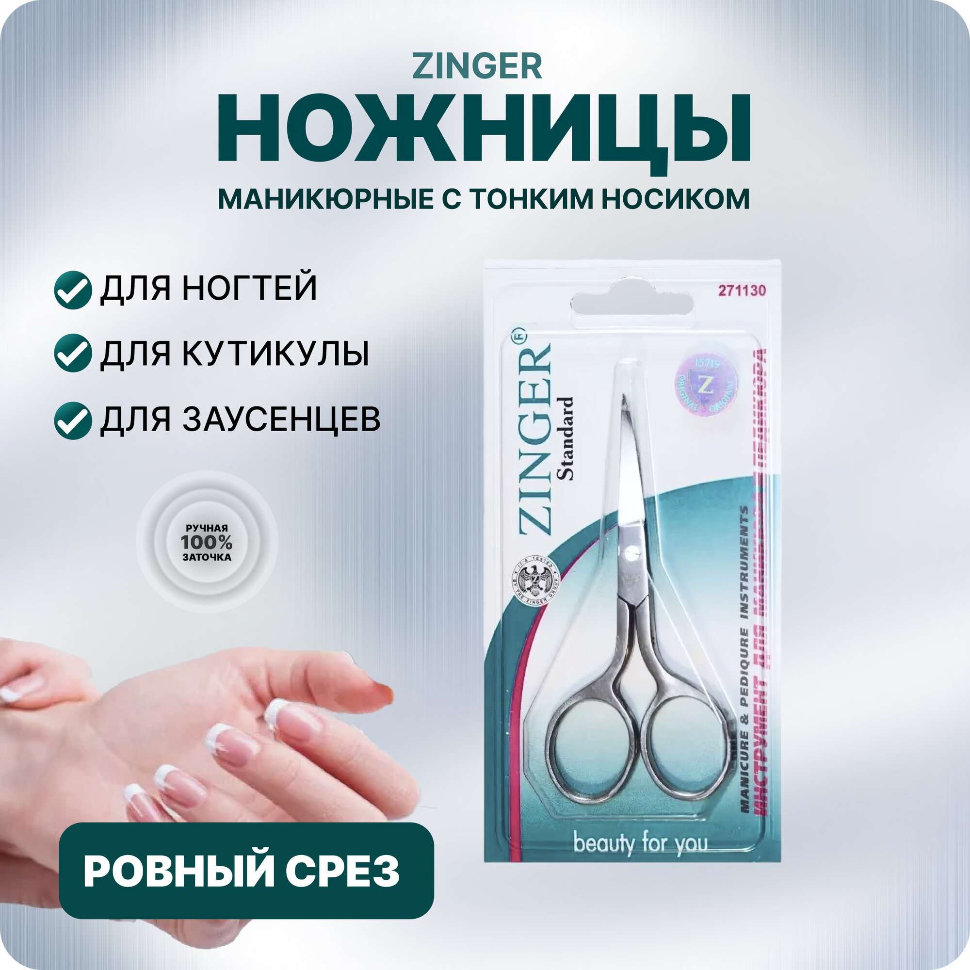 Ножницы маникюрные Zinger Standart, для удаления кутикулы, закругленные, серебряные