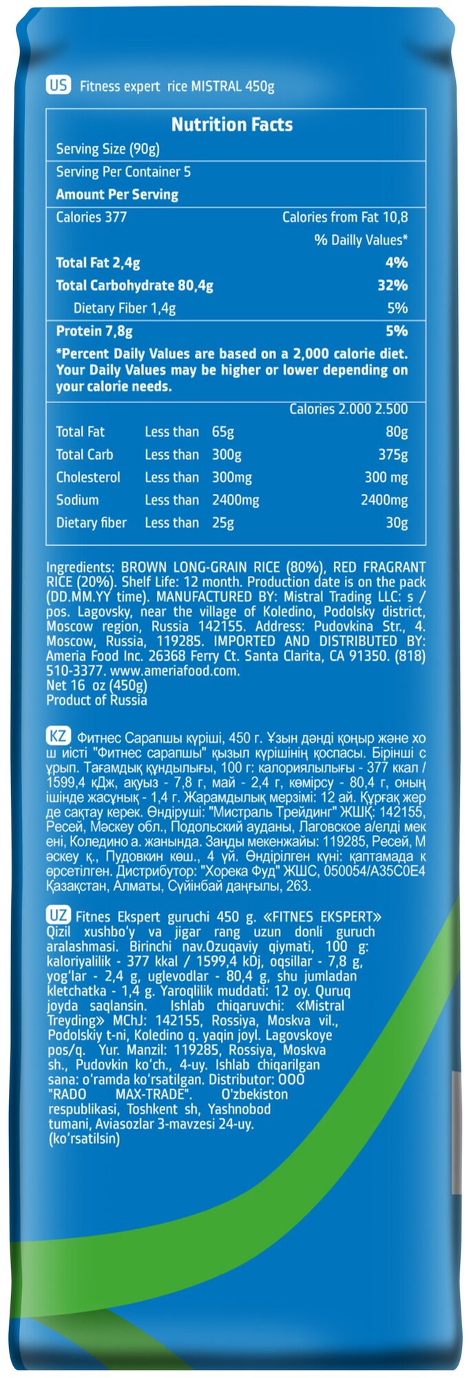 Рис мистраль Фитнес Эксперт, длиннозерный, 450 гр информация: