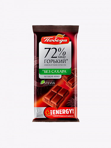 Горький шоколад без сахара 72% какао "Победа" 50 г