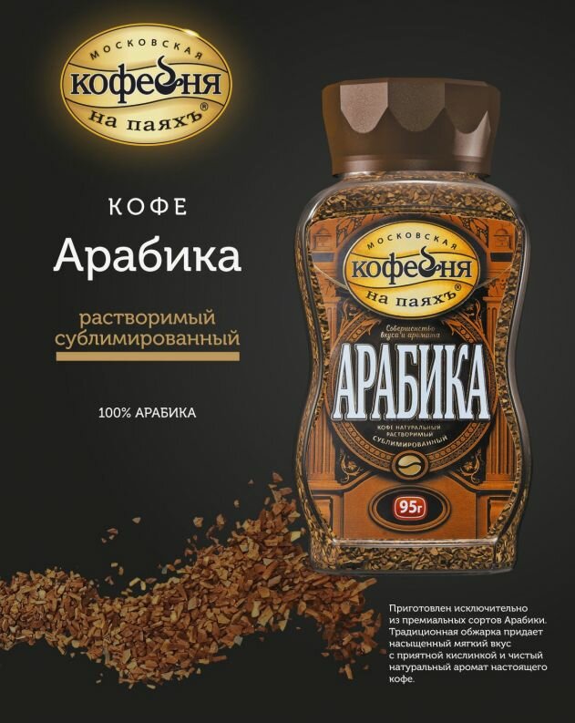 Кофе растворимый Московская кофейня на паяхъ Арабика с молотым кофе, стеклянная банка