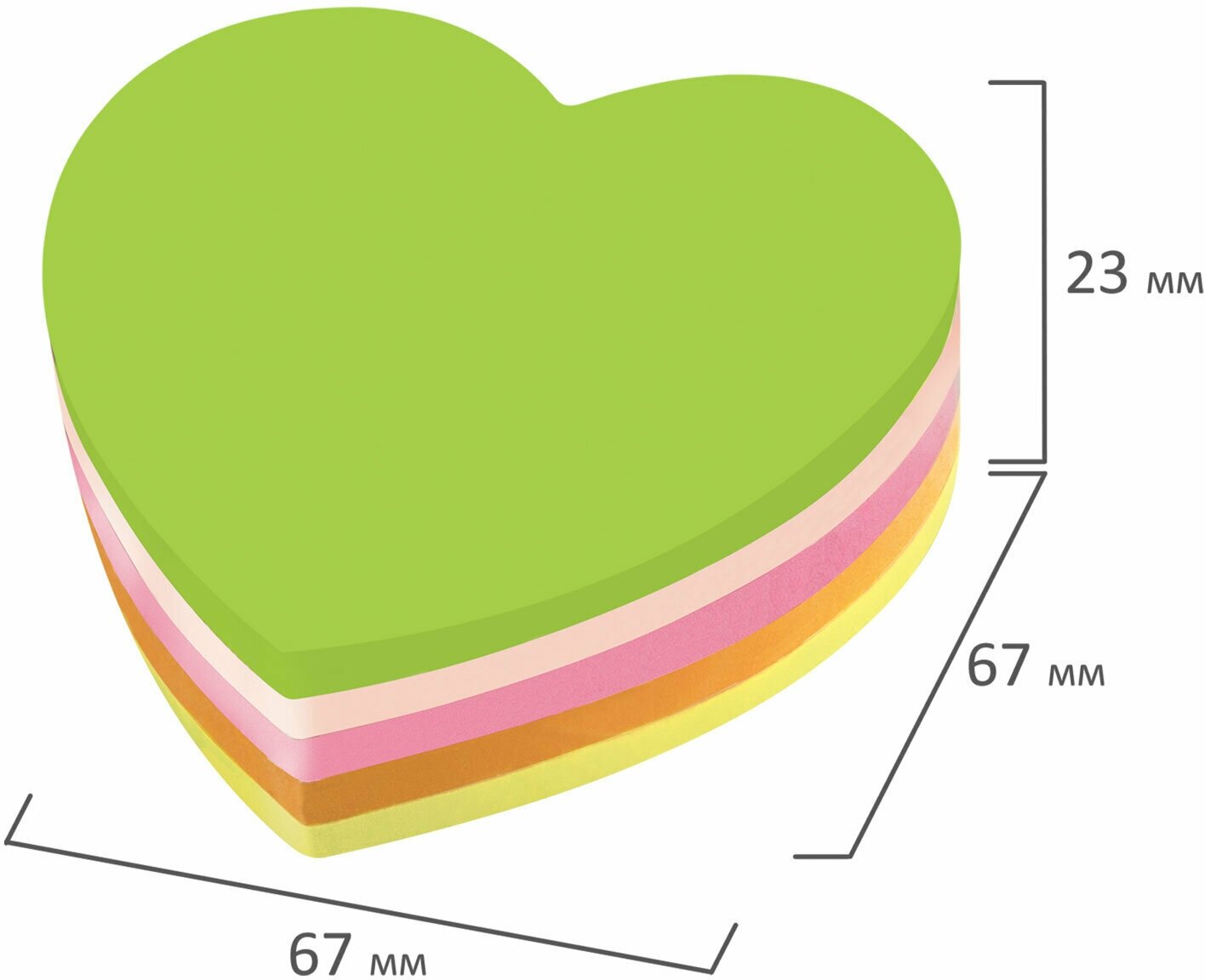 Блок самоклеящийся (стикер) Brauberg фигурный, неоновый, в форме сердца, 67х67 мм, 250 листов, 5 цветов (126690)