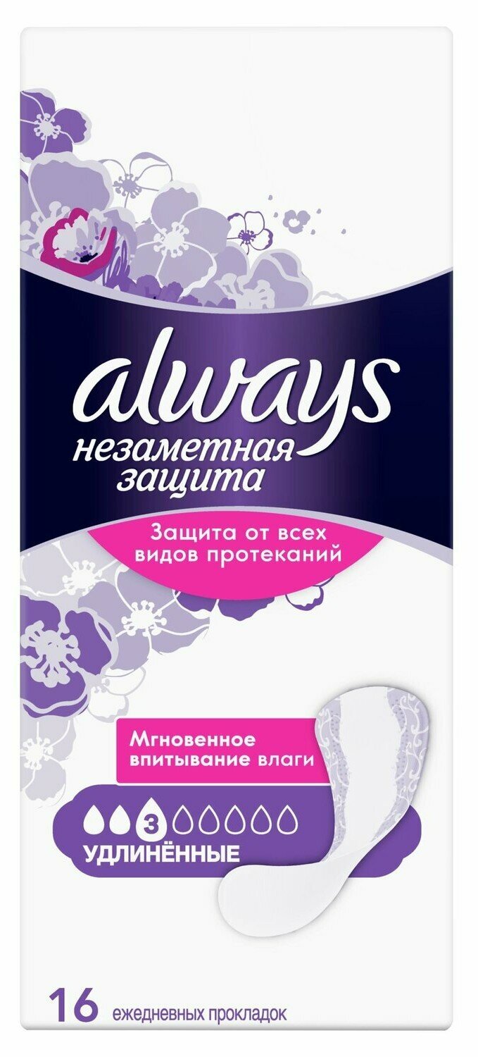 Always незаметная защита прокладки ежедневные удлиненные 16 шт./3 уп