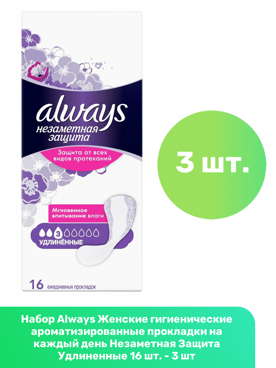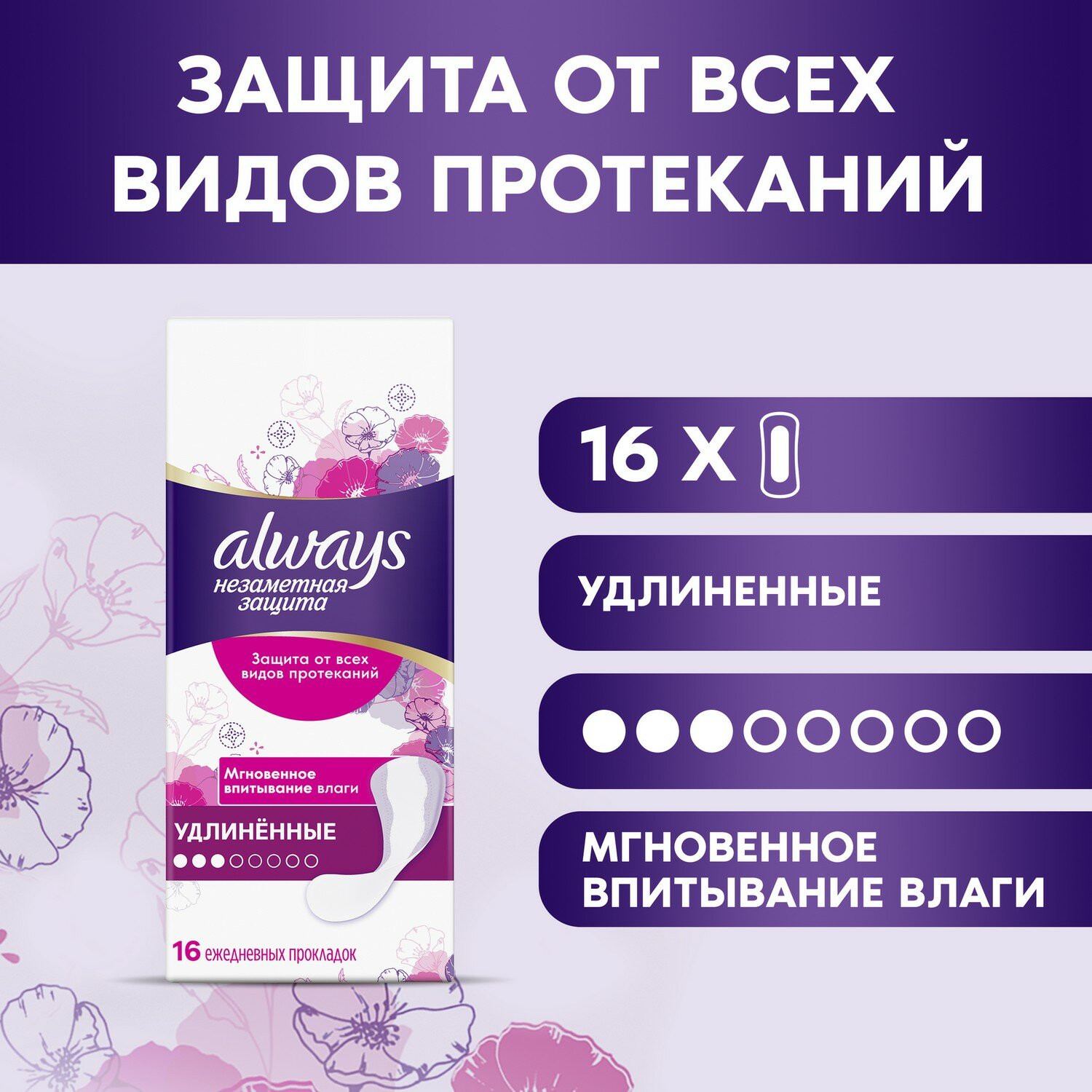 Always незаметная защита прокладки ежедневные удлиненные 16 шт./3 уп информация: