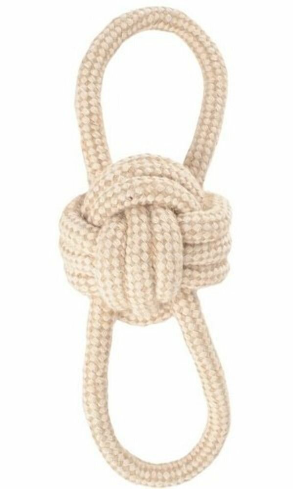 Апорт для собак Triol Мяч с петельками из хлопка и джута, бежевый, 24 см