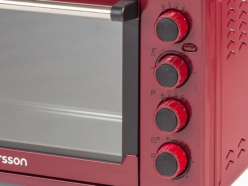 Мини-духовка Oursson "OV3815/RD", красная, внутренняя подсветка, с конвекцией и грилем , 38л
