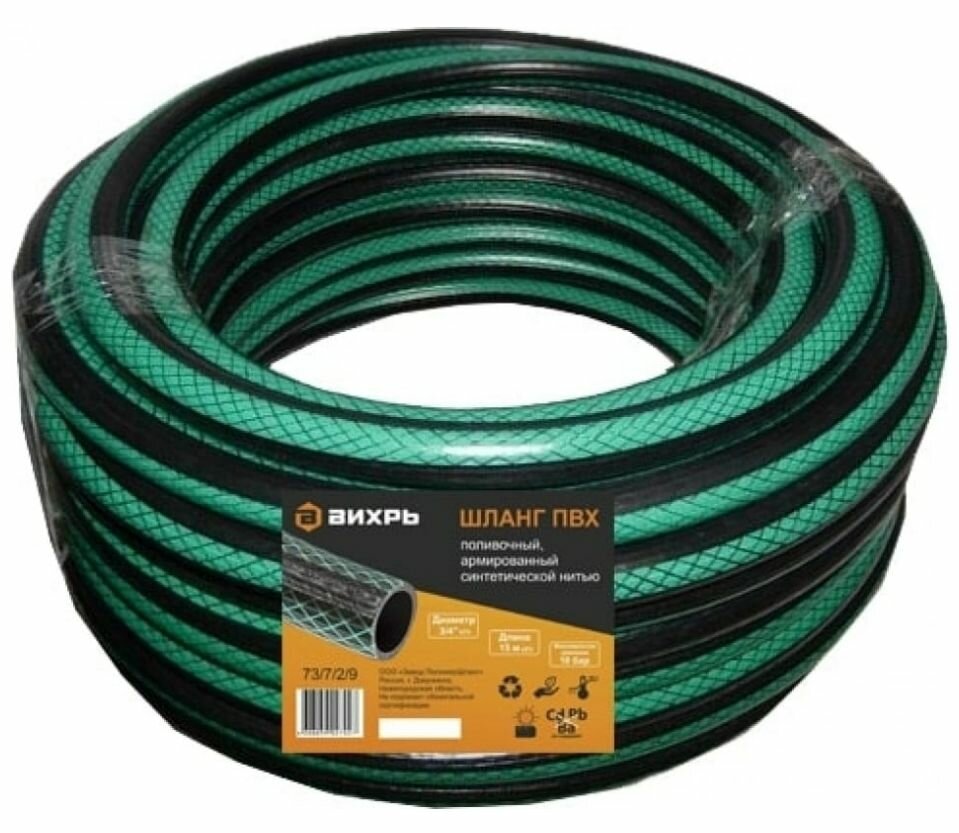10 цен на Шланг поливочный Вихрь ПВХ, трехслойный армированный 3/4, 15м, 73/7/2/9