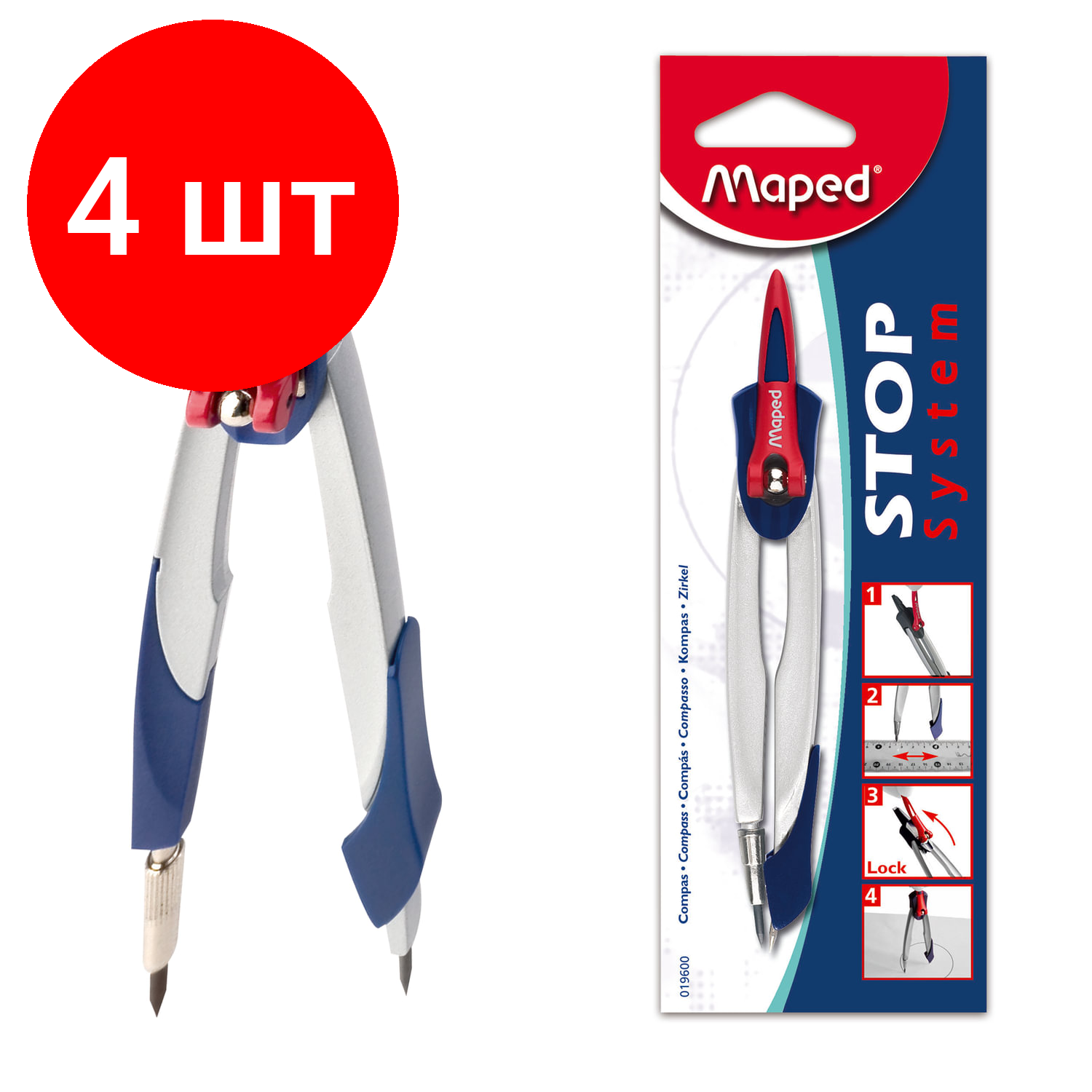 Комплект 4 шт, Циркуль MAPED"Stop System", 130 мм, металлический, грифель 2 мм, блистер, 019600 информация: