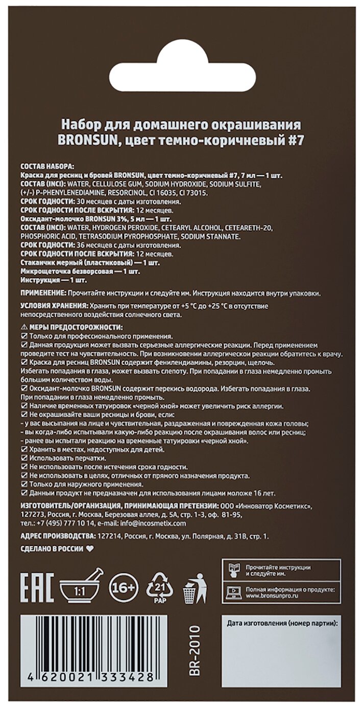 Набор для домашнего окрашивания BRONSUN (Бронсан), цвет темно-коричневый #7 new информация: