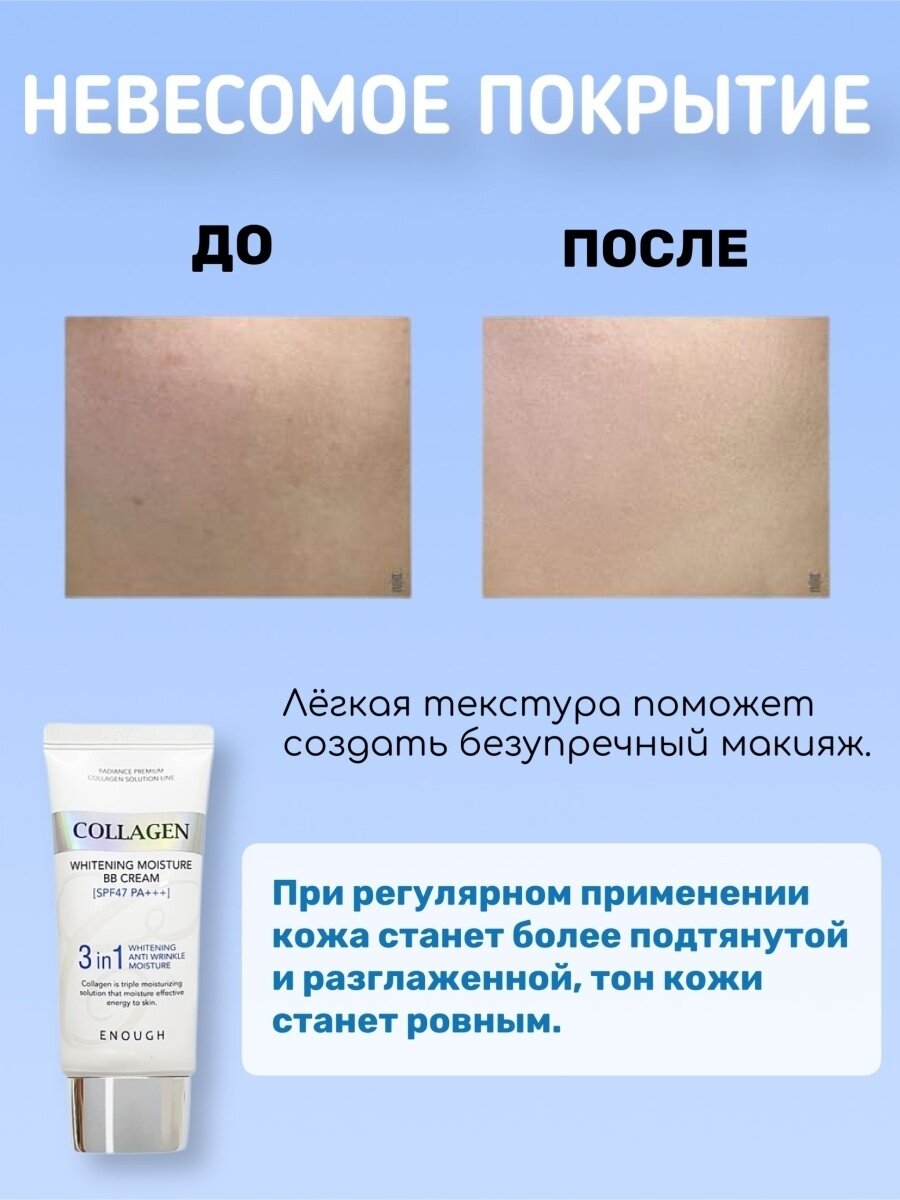 Отзывы на Original BB-крем для лица 3 в 1 осветляющий ENOUGH с коллагеном, 50 мл.