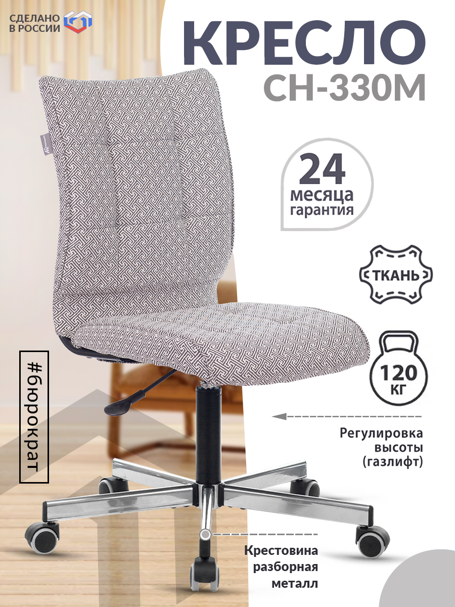 Кресло Бюрократ ch-330m, без подлокотников, серебристое, ткань, с рисунком (1624531)