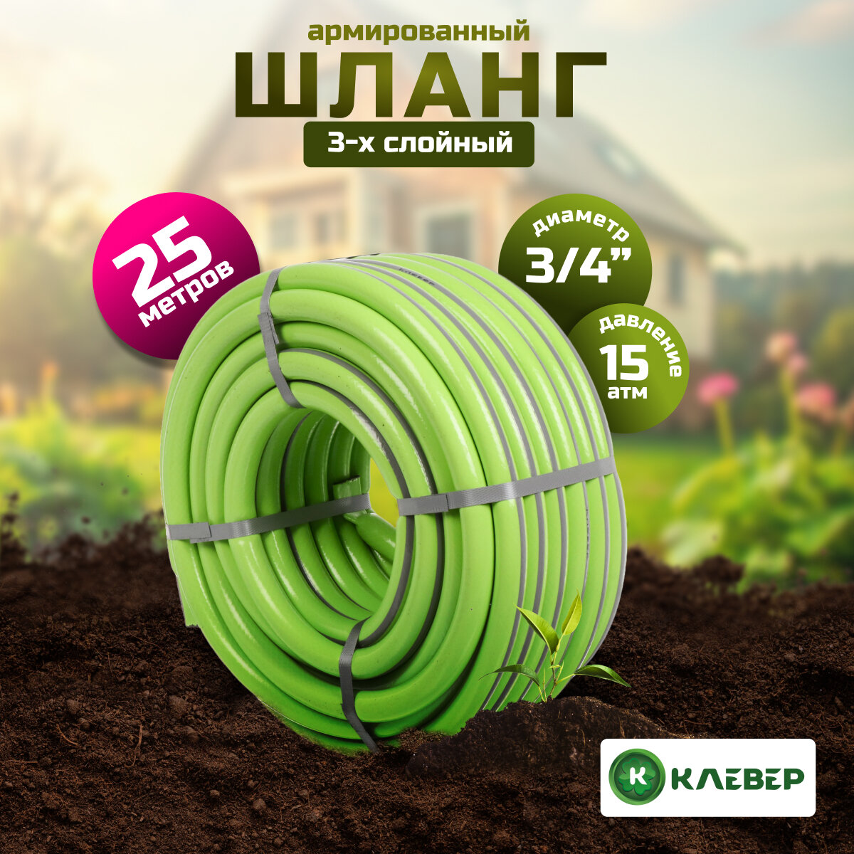 Шланг поливочный садовый 3/4 25 м армированный трехслойный, диаметр 20 мм, Клевер информация:
