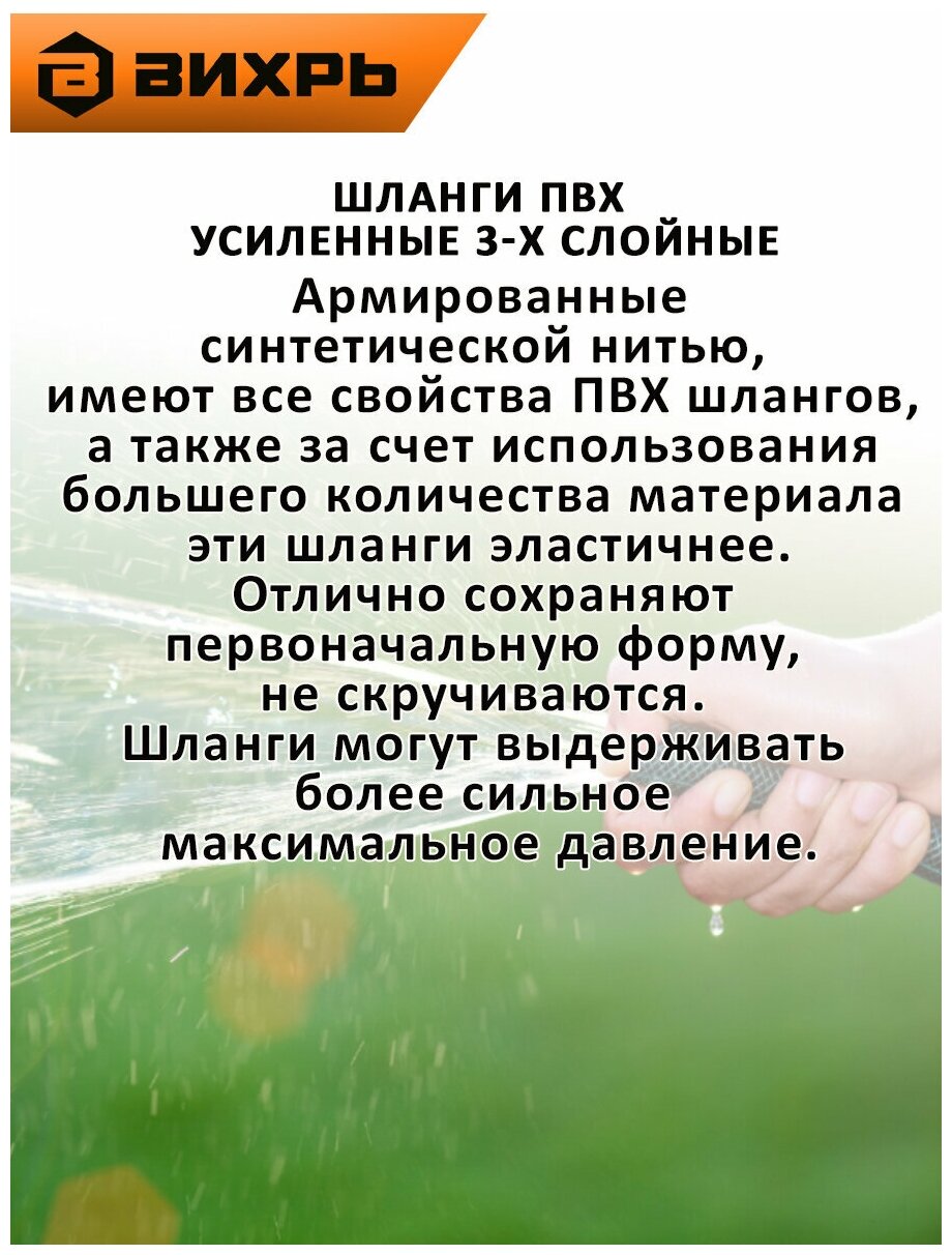 Шланг поливочный "Вихрь" ПВХ усиленный, пищевой трехслойный армированный 1/2, 25м информация: