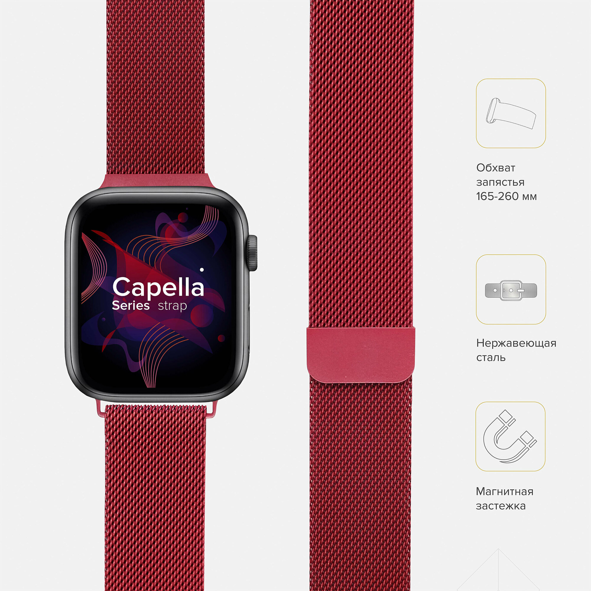 Ремешок из нержавеющей стали для Apple Watch 42/44/45/49 mm LYAMBDA CAPELLA DS-APM02-44-GS Gules информация: