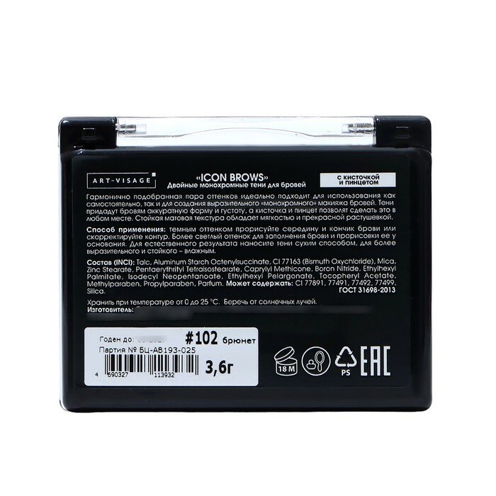 Двойные тени для бровей Art-Visage Icon Brows, тон 102 брюнет, 3,6 г информация:
