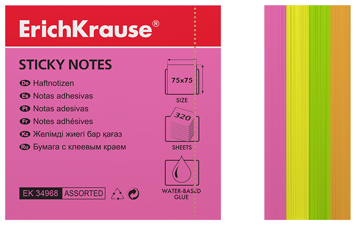 Бумага для заметок Erich Krause с клеевым краем Neon, 75х75 мм, 320 листов, 4 цвета (34968) информация: