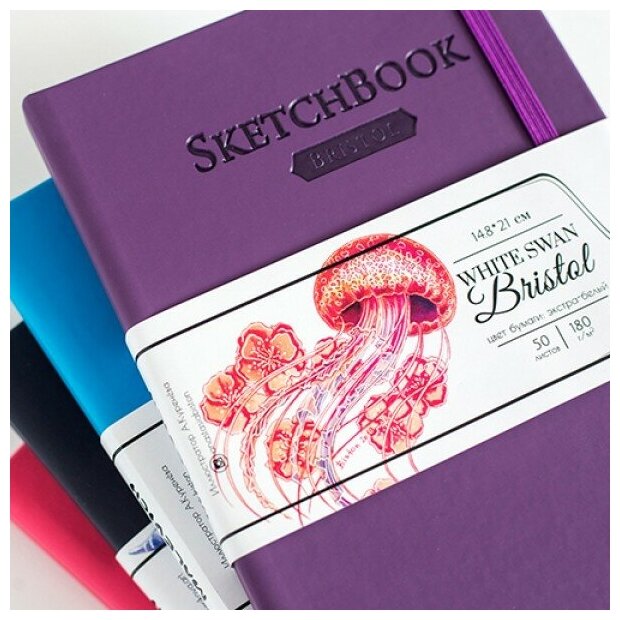 Скетчбук для графики и маркеров White Swan Bristol, фиолетовый, 180 г/м, А5 см, 50л