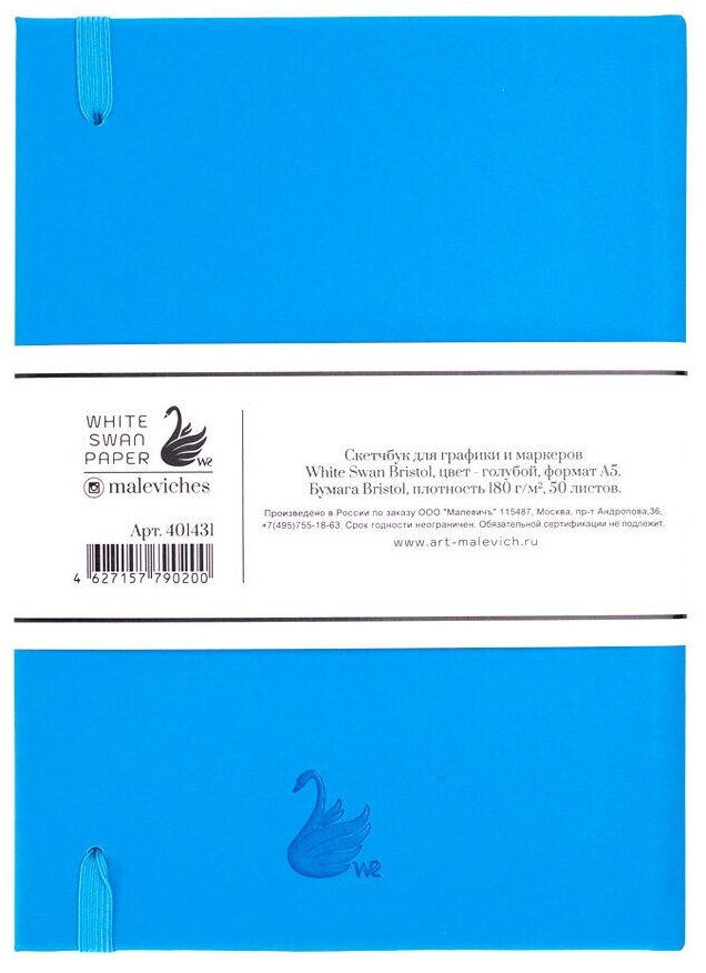 Малевичъ Скетчбук для графики и маркеров "White Swan Bristol", голубой, 180 г/м, А5 см, 50л