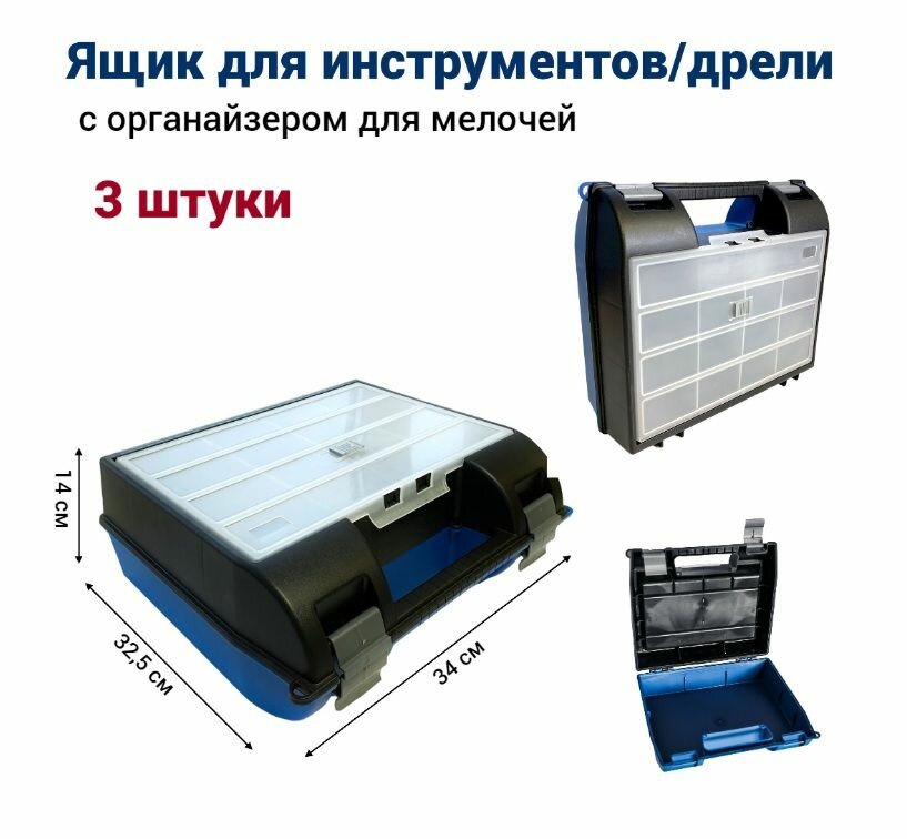 Ящик для дрели Jettools 340*140*325 мм с органайзером, 3 штуки информация: