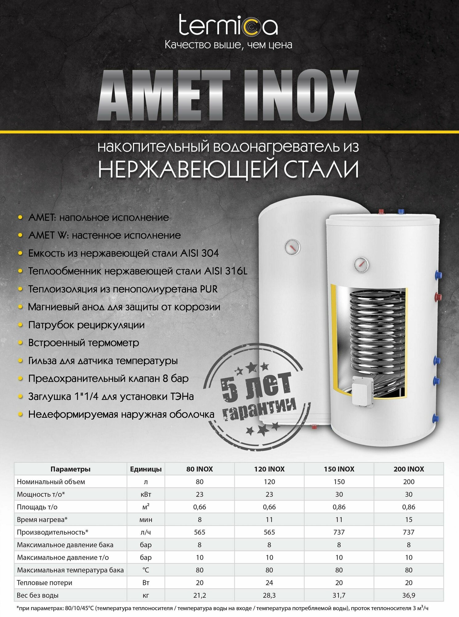 Termica Водонагреватель косвенного нагрева 120л AMET 120W INOX