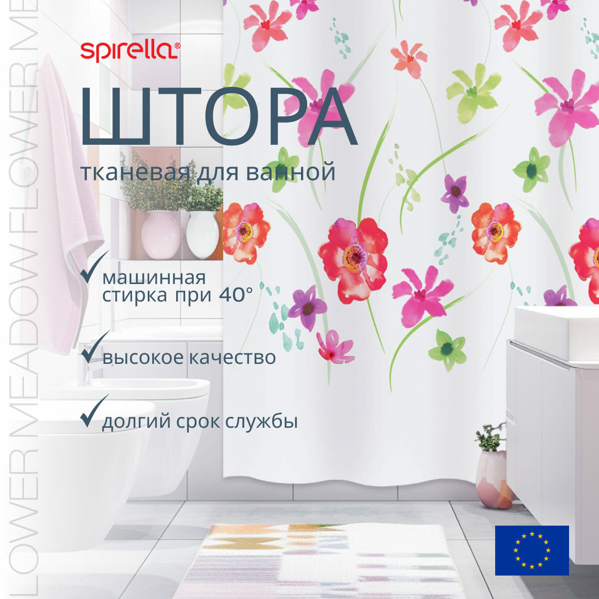 Штора для ванной комнаты Spirella Flower Meadow Red информация: