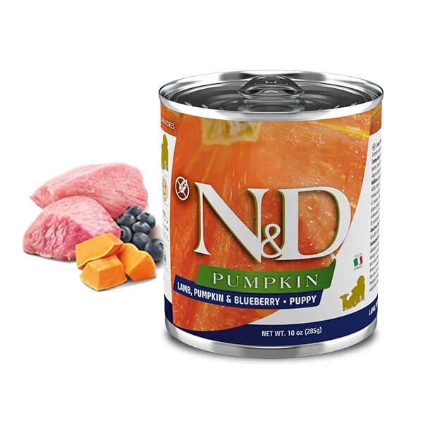 Корм Farmina N&D PUMPKIN, Lamb & Blueberry Puppy (консерв.) для щенков, ягнёнок с тыквой и черникой, 285 г x 6 шт