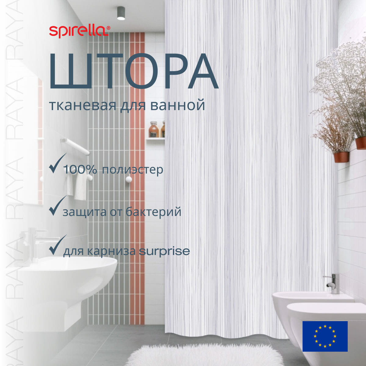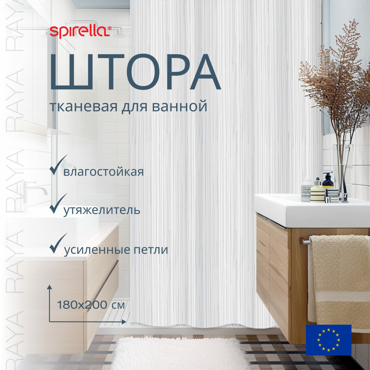 Штора для ванной Spirella Raya, 180х200см, полиэстер, цвет белый информация: