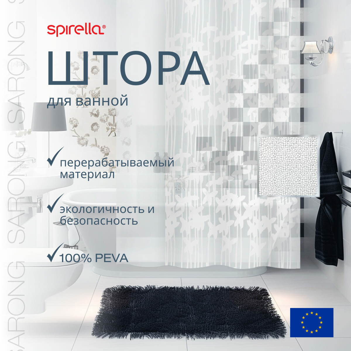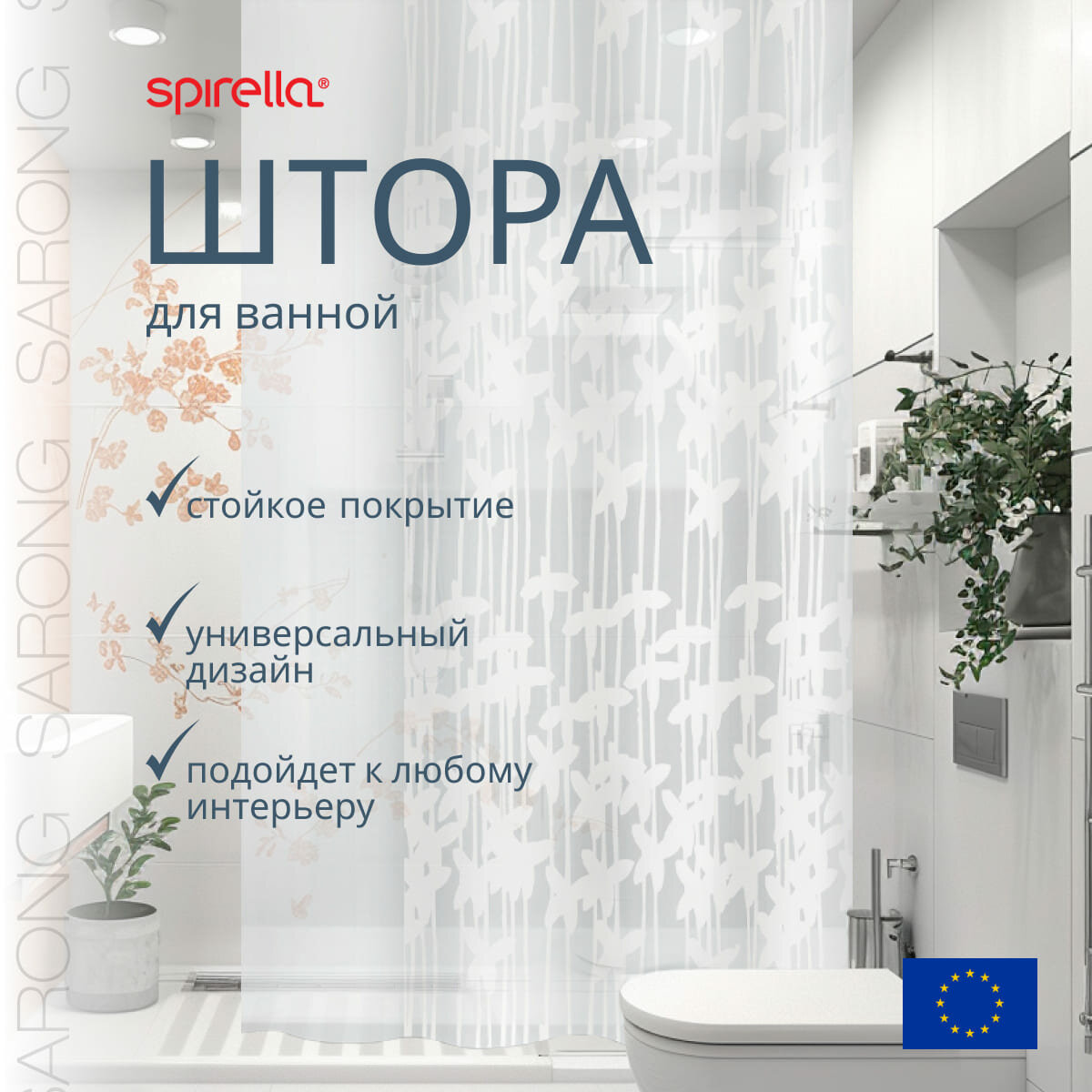 Штора для ванной Spirella Sarong, 180х200см, цвет белый информация:
