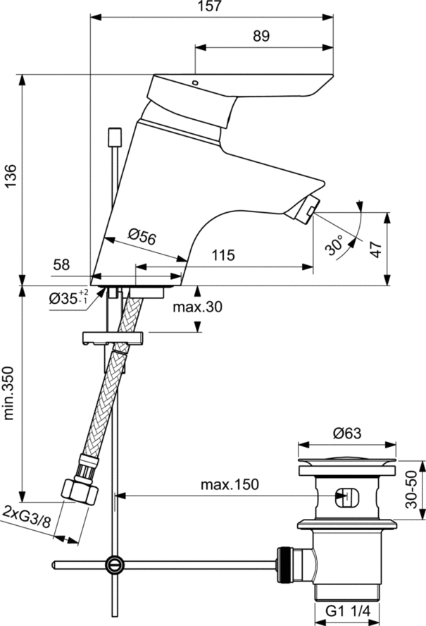 Смеситель для биде (д.к) Ideal Standard Ceraplus B8206AA информация: