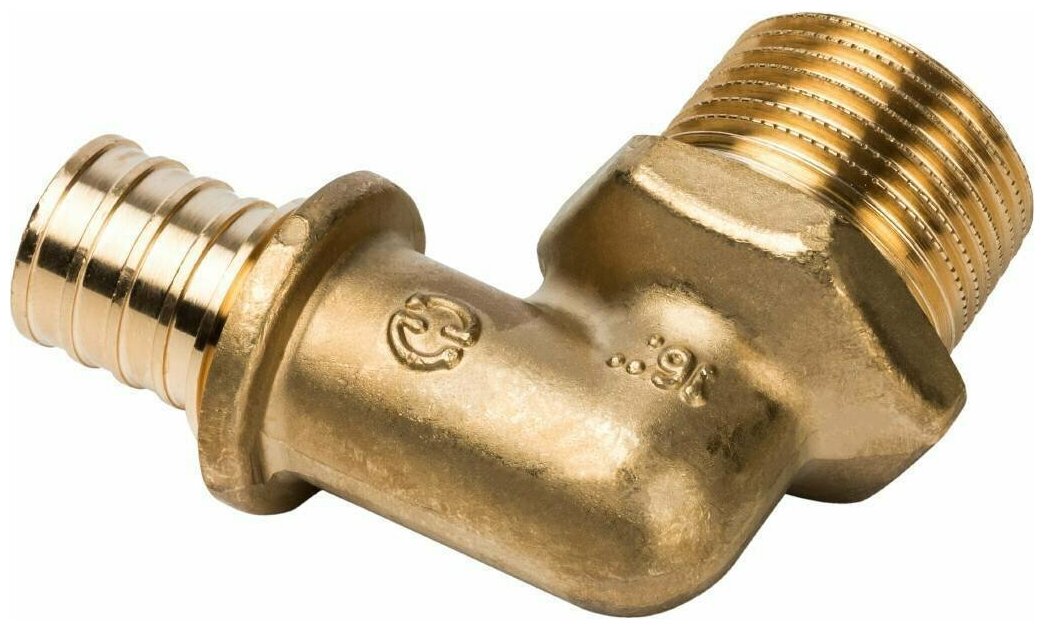 Угольник-переходник с НР 16xR 1/2" 10 шт для труб из сшитого полиэтилена аксиальный ФУМ лента 10 м 4 966 ₽
