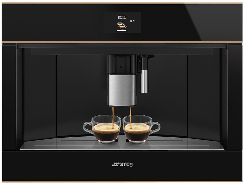 Smeg Встраиваемая кофемашина SMEG/ Автоматическая кофемашина, 60 см, высота 45 см, черное стекло, медный профиль,Сенсорное управление,Многоязычный цветной TFT-дисплей (4.3") (в том числе русский язык),13 запрограммированных напитков,Регулировка количества 299 180 ₽