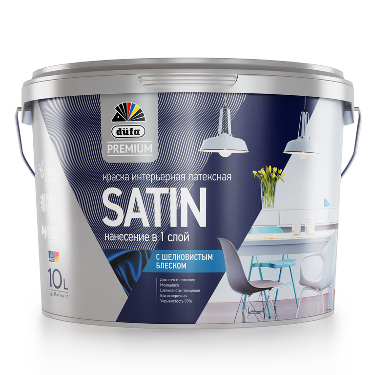 Вододисперсионная краска DufaPremium SATIN латексная интерьерная с шелковистым блеском, 9л, база 1