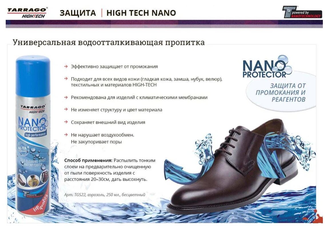 Водоотталкивающая пропитка Tarrago hightech nano protector Испания информация: