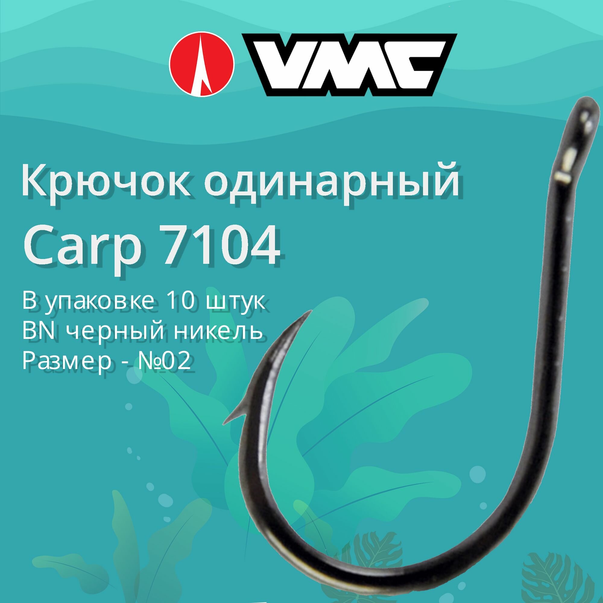 Крючки для рыбалки (одинарный) VMC Carp 7104 BN (черн. никель) №02, упаковка 10 штук информация: