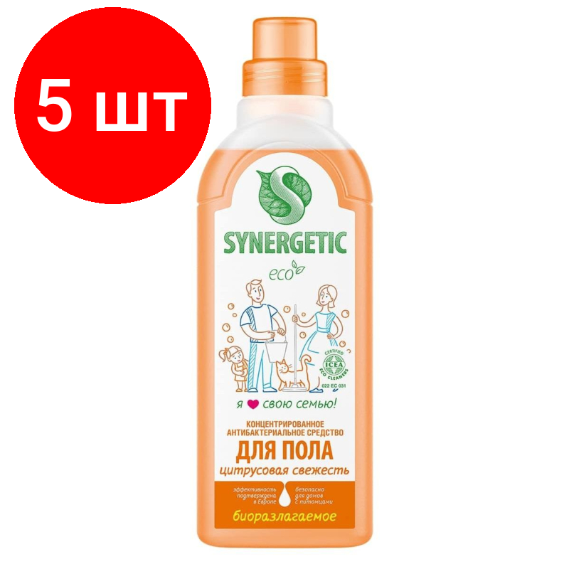 Отзывы на Комплект 5 штук, Средство для мытья пола и поверхностей SYNERGETIC Цитрусовая свежесть 750мл