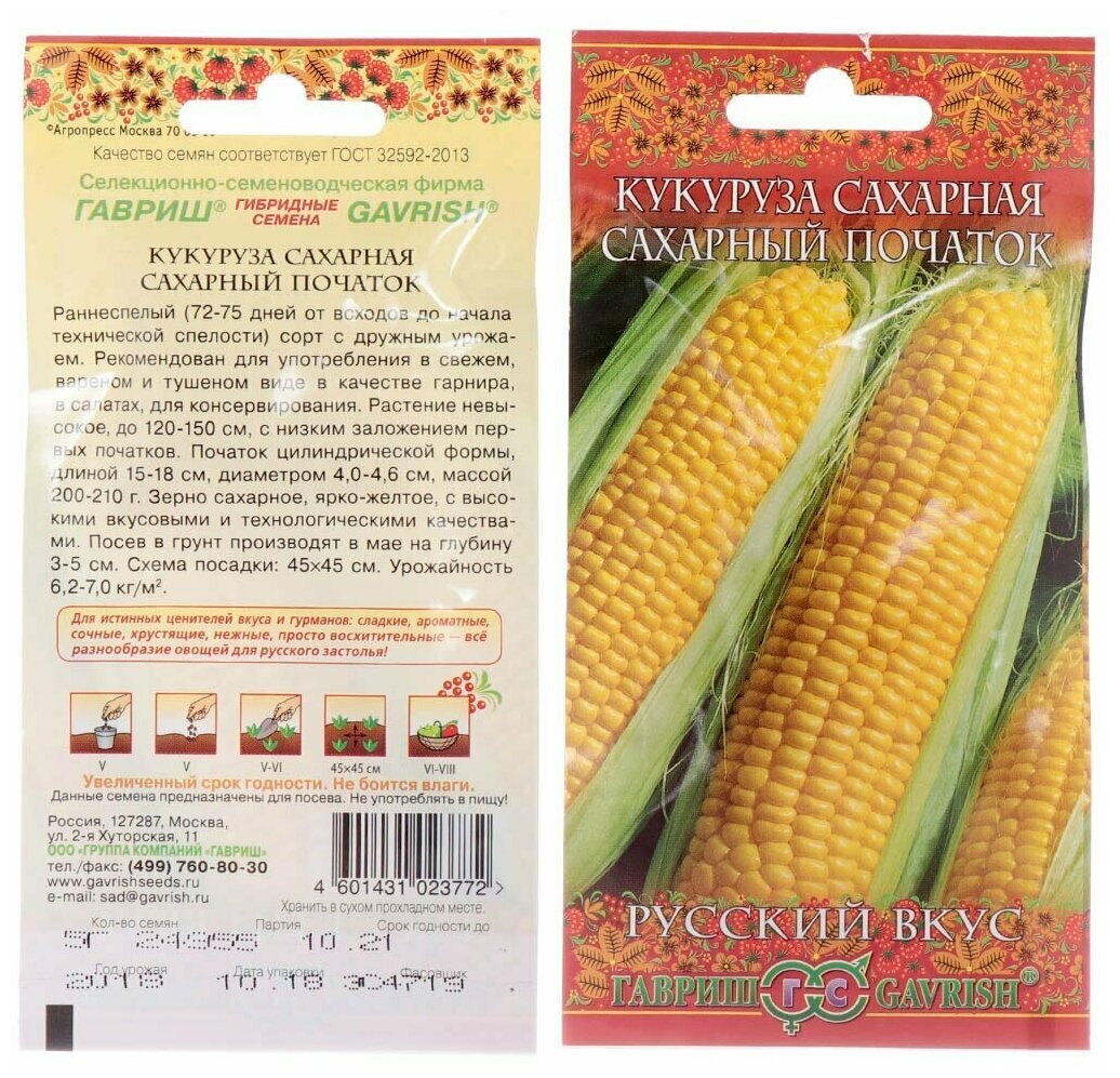 Семена Гавриш Русский вкус кукуруза Сахарный початок 5г