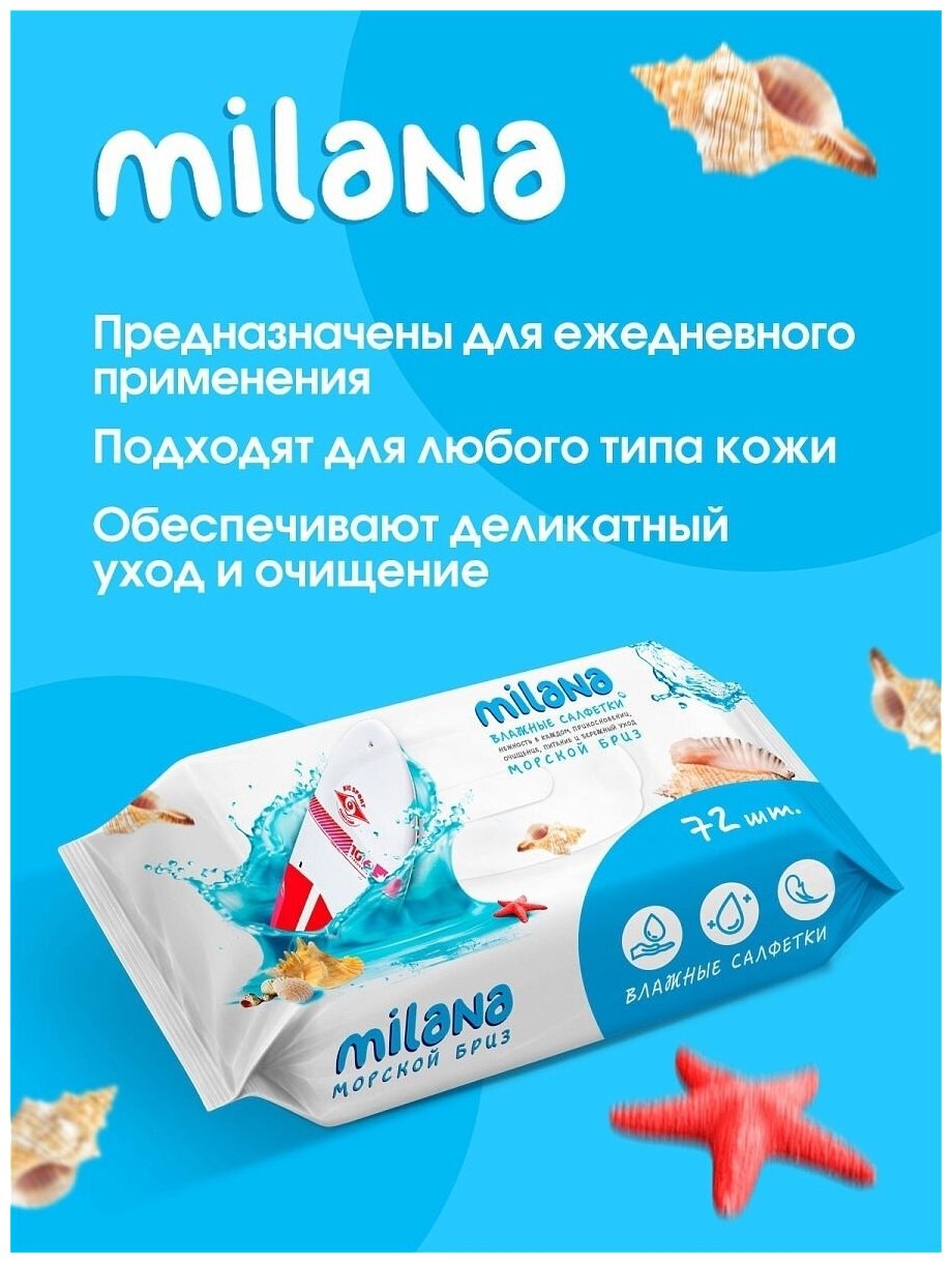 Салфетки влажные антибак. Milana (72шт) Морской бриз