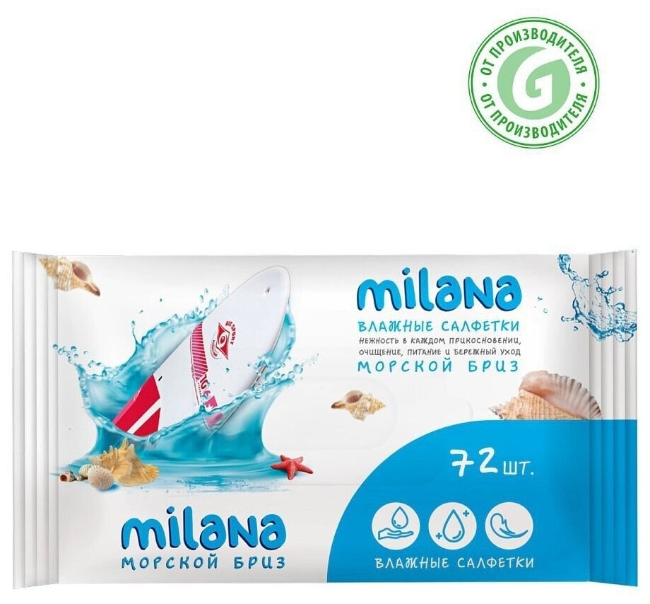 Влажные салфетки Grass Milana Морской бриз, 72 шт.