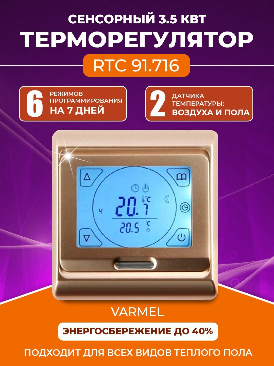 Терморегулятор Varmel RTC 91.716 золотой информация: