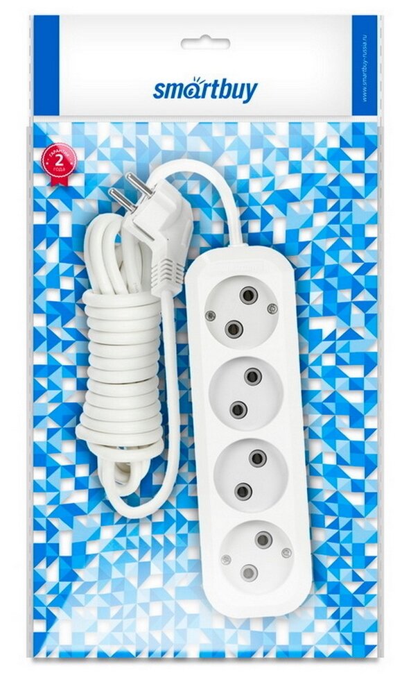 Отзывы на Smartbuy Удлинитель Smartbuy, 4 розетки, 5 м, 10 А, 2200 Вт, ПВС 2х1 мм2, без з/к, белый