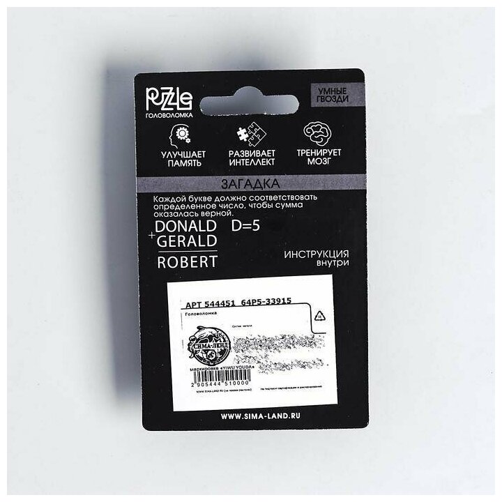 Puzzle Головоломка Игры разума «Умные гвозди» №3,на блистере информация: