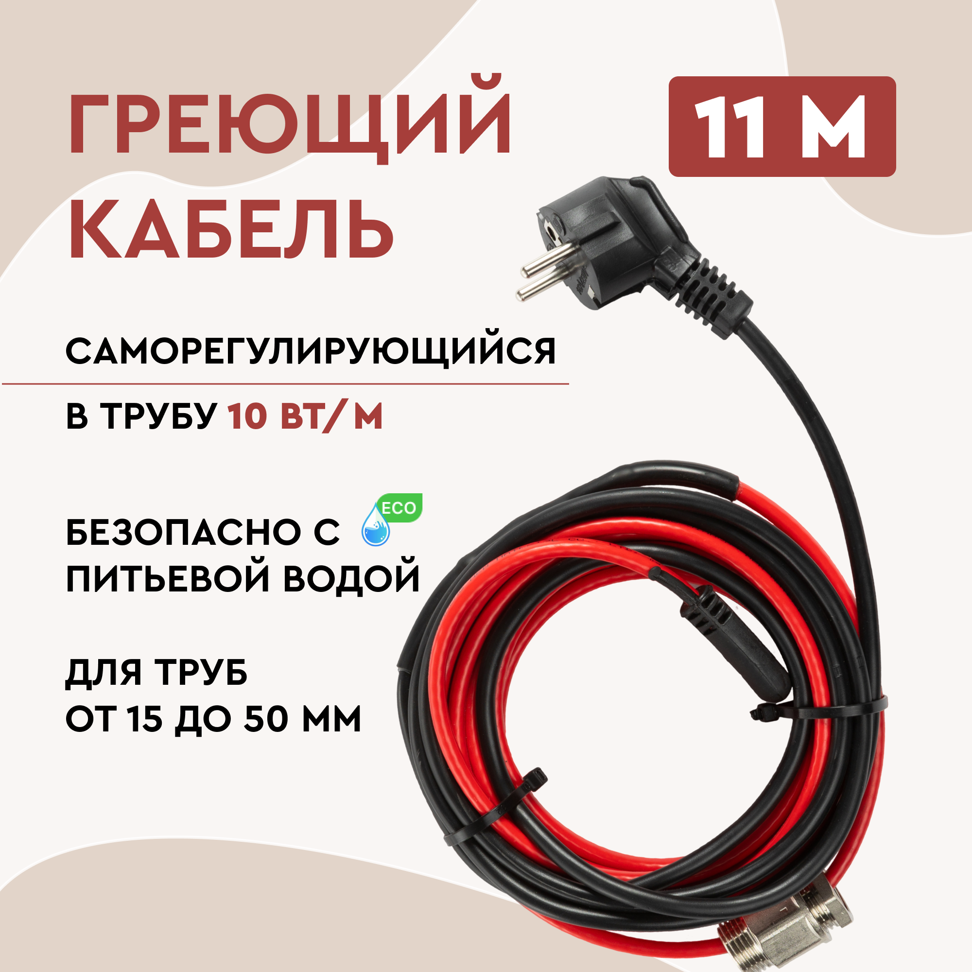 Греющий кабель в питьевую трубу 1 метр, 10 вт/м, 10 вт