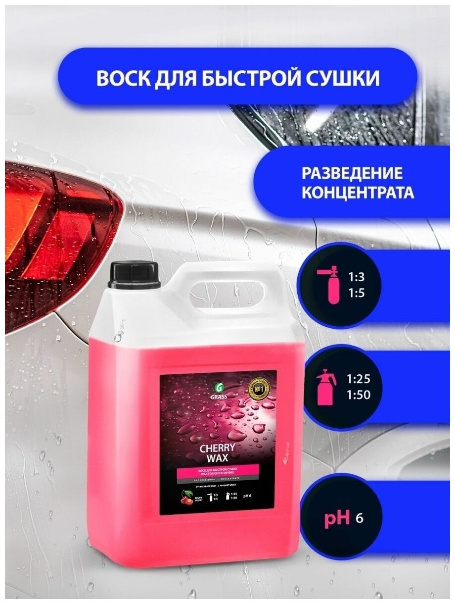 Воск для кузова 1л - холодный Cherry Wax: ускоряет высыхание и защищает кузов, безопасен для стекол, подходит для моек тоннельн/портального типа, концентрат 1:25-1:50 GRASS 138100 | цена за 1 шт