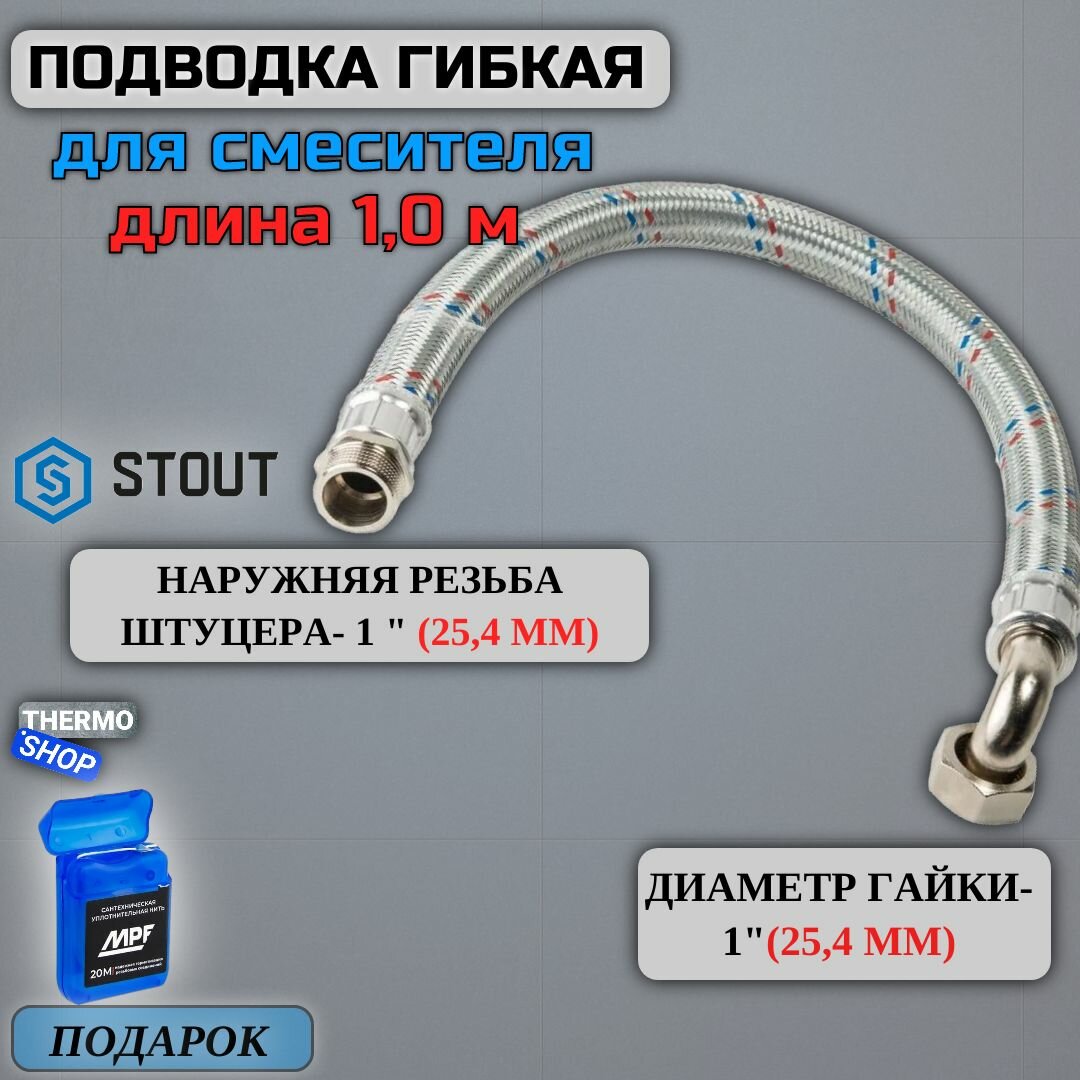 Гибкая подводка для воды STOUT SHF 016* 252525 гайка - штуцер 1