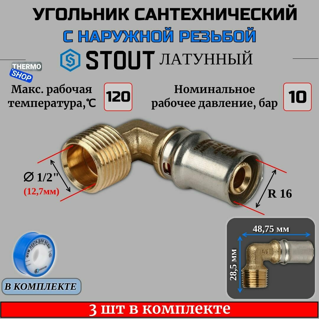 Отзывы на Угольник-переходник с НР 1/2"х16 3 шт для металлопластиковых труб прессовой ФУМ лента 10 м