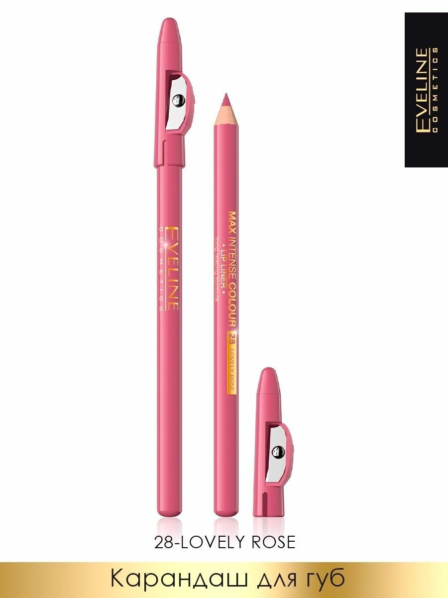Карандаш для губ EVELINE MAX INTENSE COLOUR контурный с точилкой №29, LOVELY ROSE, 149 ₽